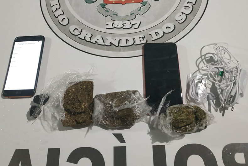 Um policial militar que atuava na guarda externa do Presídio Regional de Santa Cruz do Sul localizou, na madrugada deste sábado, 9, duas embalagens no pátio da unidade. Nos pacotes havia dois celulares, carregador, fone de ouvido e cabo USB, além de 13 gramas de cocaína e 244 gramas de maconha. Os itens foram arremessados para dentro da casa prisional. Não houve identificação de suspeitos.