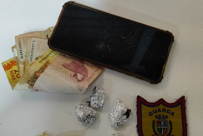 Os jovens, sendo um de 23 e outro de 24 anos, foram flagrados em atitude suspeita em um banco. Com eles foi encontrada porções de maconha, R$ 284 em dinheiro e um smartphone. Diante dos fatos, os jovens foram conduzidos à delegacia para registro de ocorrência.