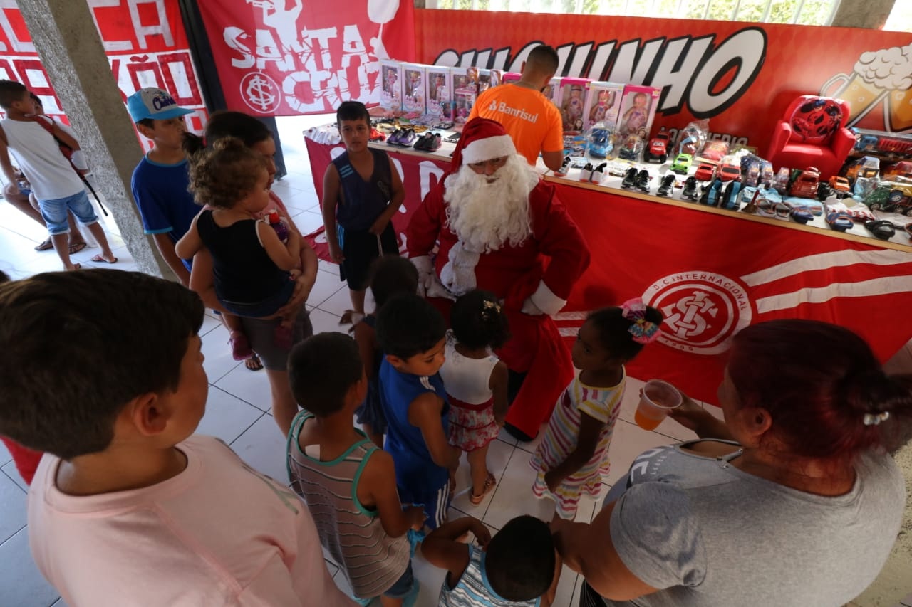 A torcida colorada Guarda Popular de Santa Cruz do Sul realizou na tarde desta terça-feira, 24, um evento de Natal com crianças do bairro Faxinal Menino Deus. Segundo Joel Alves Machado, um dos organizadores, cerca de 50 crianças participaram. Elas receberam presentes e puderam lanchar e brincar. A atividade ocorreu no Bar do Chiquinho.