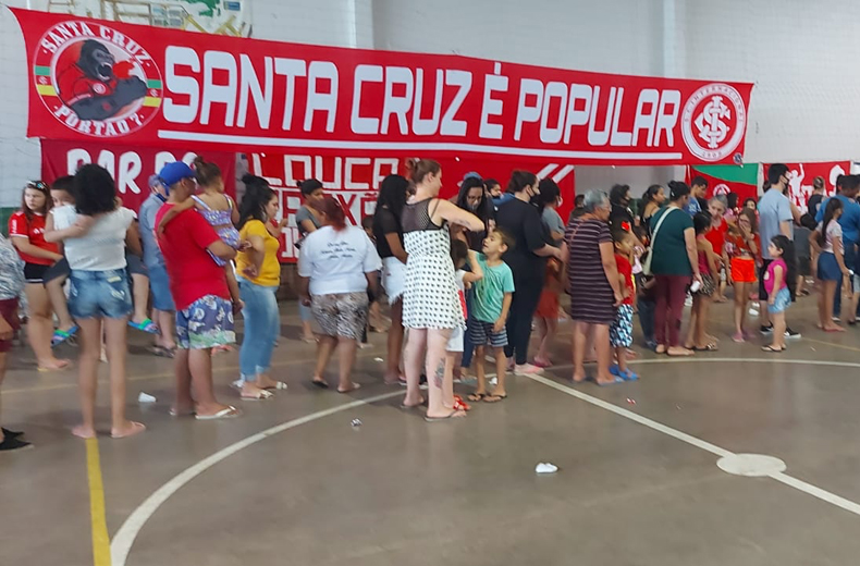 O núcleo santa-cruzense da torcida colorada Guarda Popular e o grupo Amigos do Chiquinho, em parceria com a Associação do Pólo Comunitário Menino Deus, realizaram neste sábado, 18, uma entrega de brinquedos e lanches a crianças carentes que moram no Bairro Faxinal Menino Deus. A estrutura para o evento, alusivo ao Natal, foi montada no ginásio da comunidade. Um papai noel fez a alegria dos presentes.