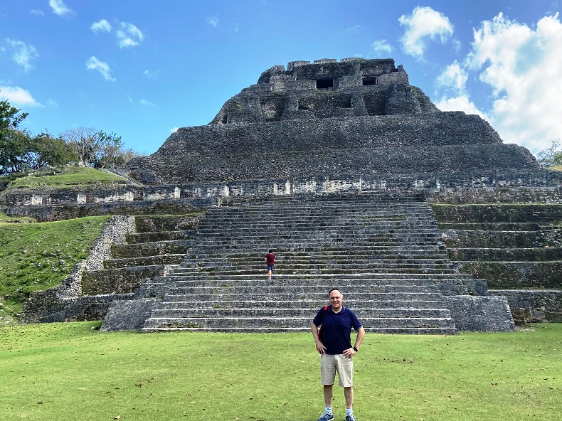 Com base na cidade fronteiriça de San Ignacio, paraíso de exploradores da rica natureza da região, atravessei de balsa o belo rio Macal para atingir meu objetivo em território belizense: a cidade maia de Xunantunich (senhora das rochas). Ainda que menos impressionantes do que as ruínas do lado guatemalteco, o isolamento e os poucos visitantes transformam a visita em uma interessante aventura por antigas construções de até 1.300 anos. O principal templo, O Castelo, pode ser escalado, porém, a falta de cercas de proteção e o alto risco de queda me preocuparam um pouco. A vista do topo compensa o esforço, revelando a espessa floresta tropical e as várias cidades dos dois lados da fronteira Belize-Guatemala.