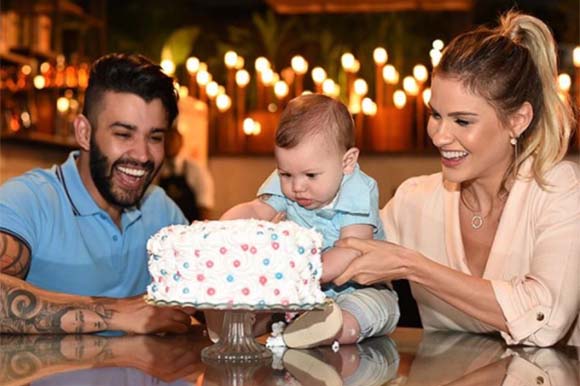 O anúncio foi feito por meio de uma sequência de fotos no Instagram, em que ele, Andressa, e o primeiro filho do casal, Gabriel, ‘desvendam’ a cor no interior de um bolo. No caso, era azul, o que representava um menino.