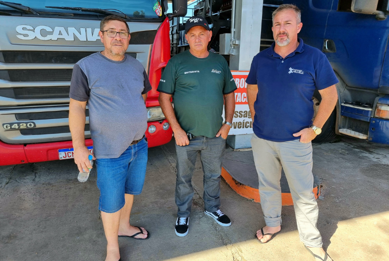 Neicir Castelan, José Paulo Mesquita e Rodrigo Rocha tiveram de parar seus caminhões junto a posto de Venâncio Aires