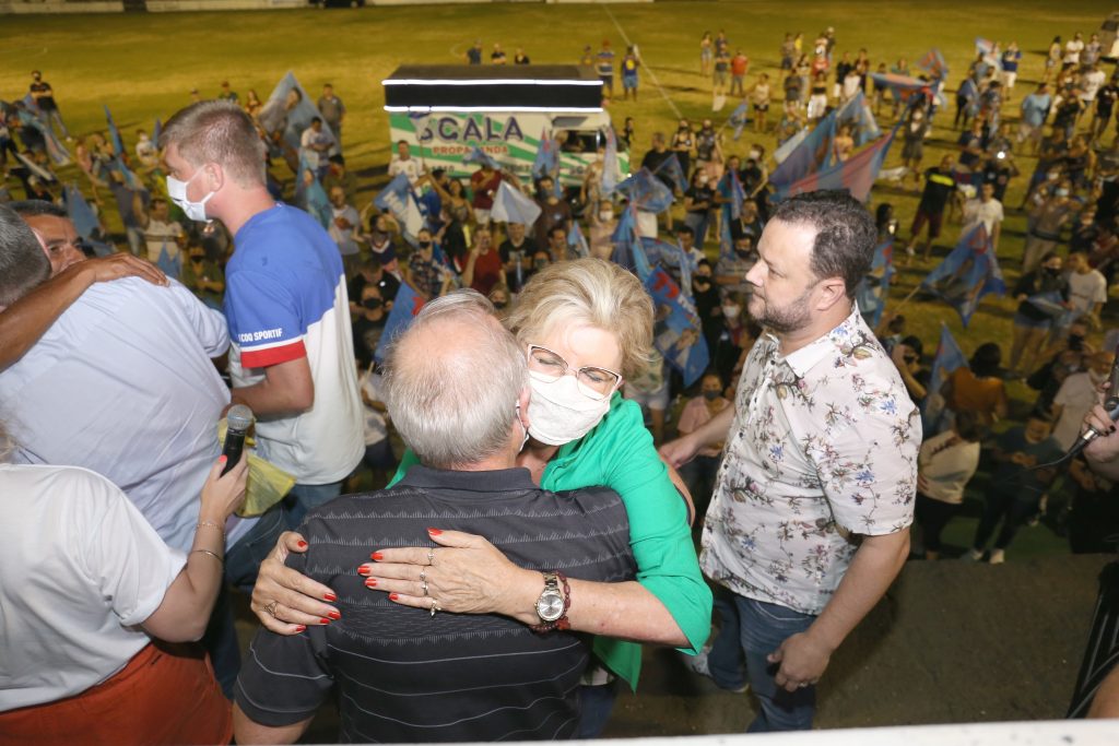 Já passava da meia-noite quando Helena iniciou seu discurso sob chuva no Estádio dos Plátanos. Visivelmente emocionada, abriu a fala comemorando o entrosamento de sua equipe. “Nada deu errado. Não teve uma discussão, uma briga. Foi sempre um clima de alegria e confraternização”, disse. Em seguida, fez uma menção velada às críticas aos clãs familiares que marcaram a campanha e agradeceu ao marido e filhos. “Sempre digo: quem tem família, tem base. Tu só consegue fazer um bom trabalho na rua quando sai de casa bem e amparado.” Ao lado do vice eleito Elstor Desbessell (PL), afirmou que os dois formaram uma “soma imbatível”, por conta da sua inserção nos bairros da Zona Sul e da relação dele com o interior. “Vocês podem ter certeza de que o Elstor e eu vamos fazer um grande governo”, assegurou. Ainda se dirigindo a Elstor, fez referência ao seu rompimento político com o prefeito Telmo Kirst (PP) em março do ano passado, ocasião em que alega ter sido alijada do governo que ajudou a eleger. “Por tudo o que eu sofri, podes ter certeza que jamais vou fazer com um vice meu o que fizeram para mim. Eu sei como dói uma ingratidão”, disse Helena, sob aplausos da militância.