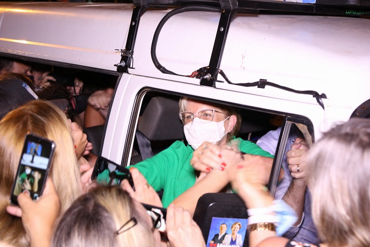 Helena comemorou o resultado com apoiadores antes de ir à festa da vitória