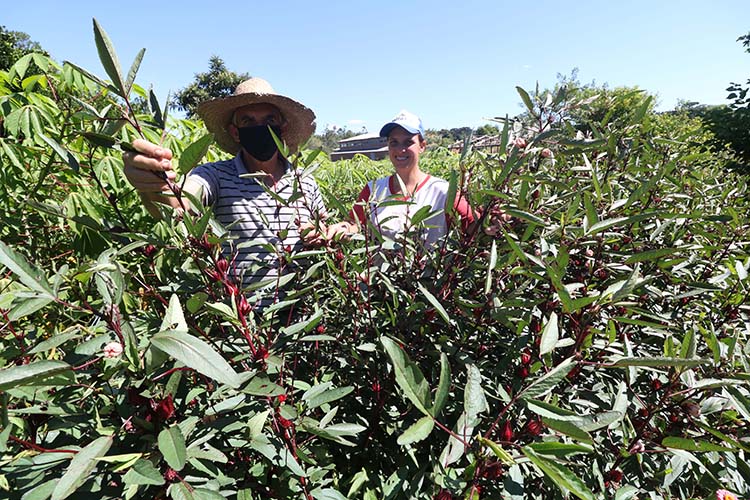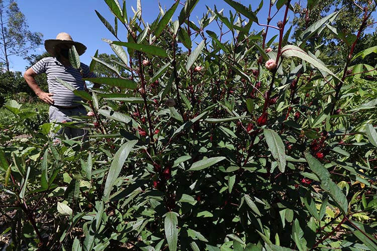 Em Linha Pinheiral, em Santa Cruz do Sul, mais precisamente no Beco do Moranguinho, no caminho para Passo do Sobrado, o produtor Geraldo Inácio Gais realiza o cultivo de hortaliças. Na área de cerca de quatro hectares de onde tira o seu sustento, o agricultor mantém mais de 300 pés de hibisco para vender nas feiras rurais da cidade há cerca de dez anos. Segundo Geraldo, que trabalha na lavoura com sua filha Elisane, o plantio e o consumo do hibisco ainda são pequenos na região, pois muita gente desconhece o potencial da planta. Portanto, existe espaço para aumentar o mercado. “O consumo é meio trabalhoso, porque tem que tirar a flor e cozinhar para fazer o chá. Às vezes as pessoas não querem fazer esse trabalho, mas é uma planta que vale muito a pena, pois é barata e dá pra fazer muita coisa.”