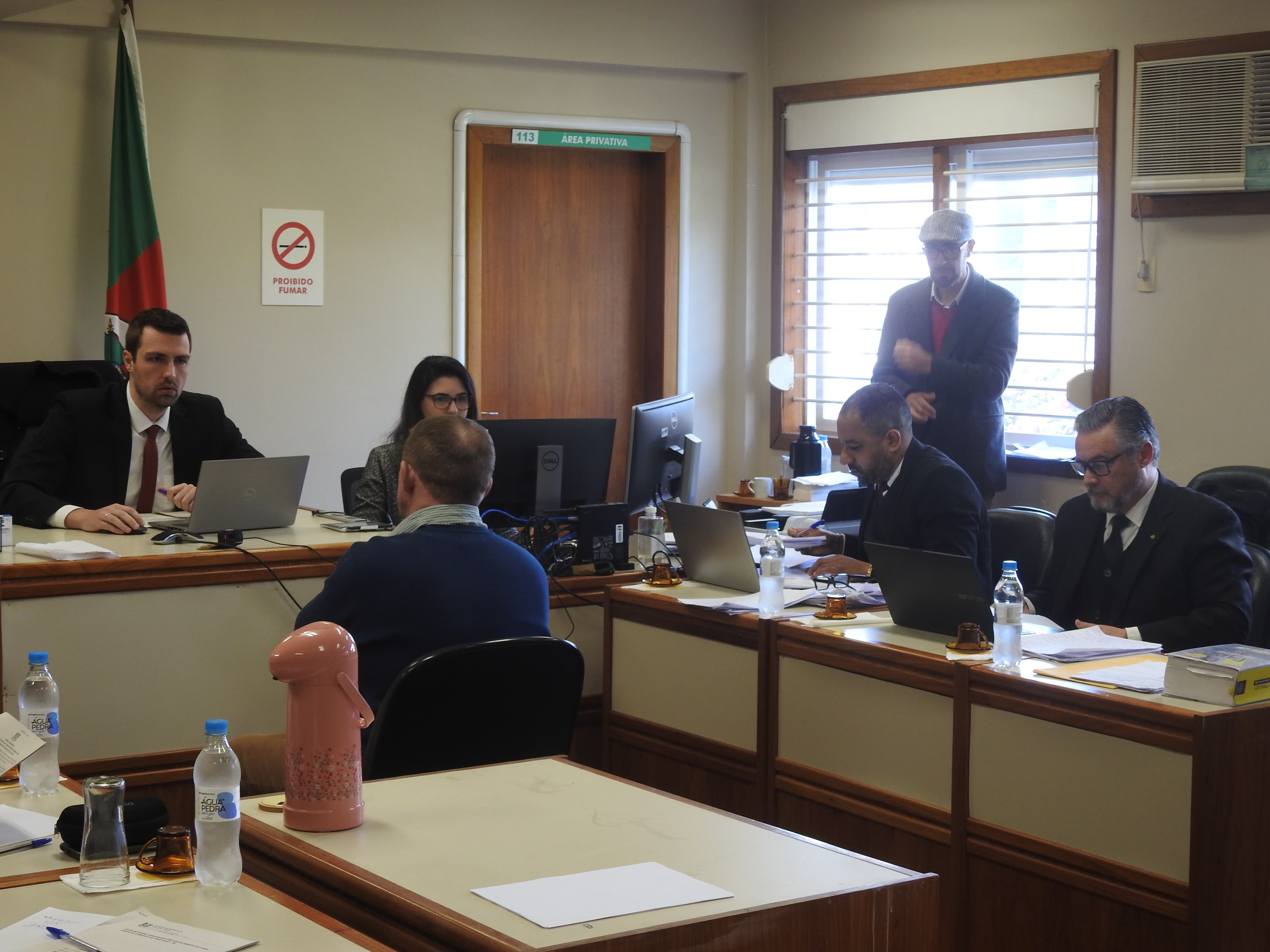 Primeiro a prestar depoimento, o policial militar Jeferson Daniel da Silveira, de 32 anos, detalhou a abordagem que resultou na prisão de Arnoldo. Ele explicou que o réu aparentava estar muito embriagado, com falas desconexas, e só parou de tentar investir contra a guarnição quando houve o disparo de arma letal. O PM disse que Arnoldo chegou a vomitar dentro da viatura após a captura.