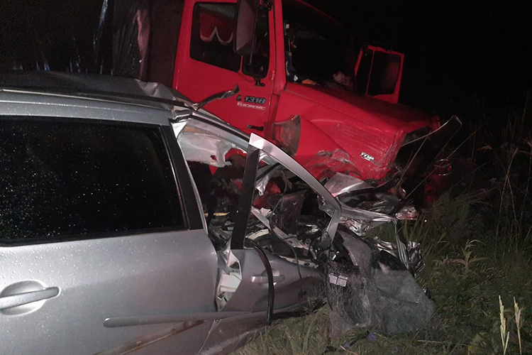 O automóvel colidiu com um caminhão Mercedes-Benz 1318, de Garibaldi, carregado com tomate, cebola, banana e outros produtos alimentícios, que transitava no sentido contrário. O motorista e o caroneiro do caminhão, de 53 e 18 anos, respectivamente, sofreram apenas escoriações leves e foram encaminhados pelo Serviço de Atendimento Móvel de Saúde (Samu) ao Hospital Santa Cruz (HSC).