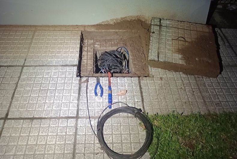 A guarnição foi acionada após vigilantes de uma empresa de segurança constatarem a queda de energia no local e flagrarem o indivíduo com um alicate nas mãos, tentando acessar a fiação. Ao lado dele, foram encontrados fios cortados e uma tampa retirada para permitir o acesso à rede elétrica.