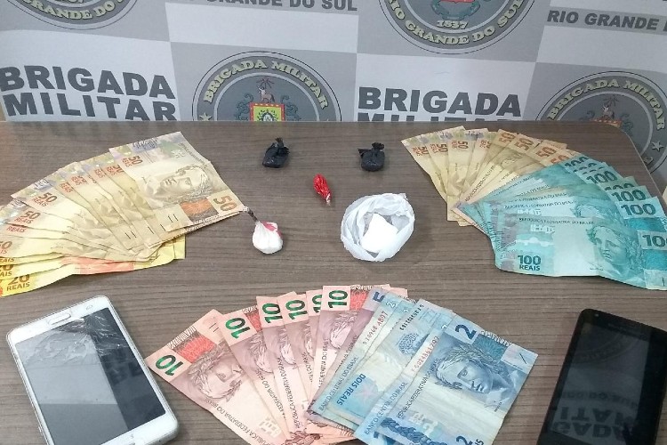 Os policiais militares apreenderam duas buchas de cocaína pesando 14 gramas, duas buchas de maconha de 4,9 gramas, dois telefones celulares e R$ 1.805,00. Com o usuário, foi apreendida uma bucha de cocaína.