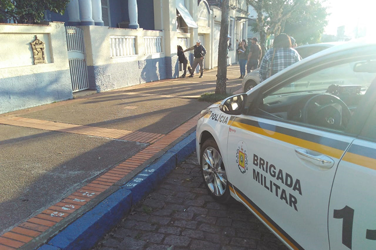 Um homem de 42 anos foi preso após tentar assaltar um pedestre na tarde desta quinta-feira, 15, na Rua Tenente Coronel Brito, no Centro de Santa Cruz do Sul. De acordo com a Brigada Militar, a guarnição teria visto o homem ameaçando a vítima com uma barra de ferro e uma faca. Ainda segundo a BM, um popular teria conseguido pegar a barra e deter o homem. Conforme informações do popular, ele teria agredido o suspeito com o objeto. O acusado foi conduzido para a Delegacia de Polícia Civil.