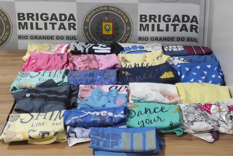 Foram apreendidas 21 peças de roupas infantis (14 blusas femininas e sete masculinas infantis). Diante ao fato, o indivíduo foi encaminhado à delegacia para registro.