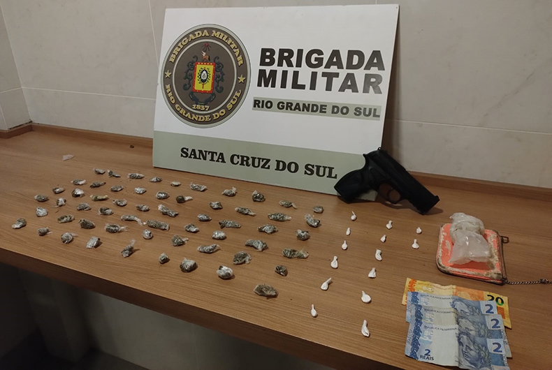 A Brigada Militar, através do 23°Batalhão de Polícia Militar (23°BPM), prendeu um homem de 18 anos na noite desse sábado, 11, no Bairro Santa Vitória, em Santa Cruz do Sul. Por volta de 19h20, durante patrulhamento realizado na área, os policiais militares flagraram o crime de tráfico de drogas praticado no local.