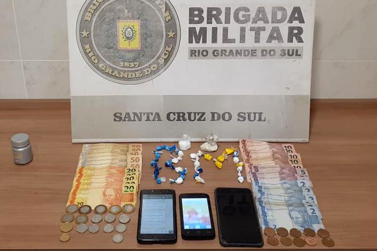 Foram apreendidos com o homem drogas, celulares e dinheiro