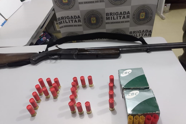 Durante patrulhamento, os policiais militares abordaram um veículo Fiat Palio e localizaram uma espingarda, dois canos calibre 12 municiada com dois cartuchos deflagrados. Ainda, foram apreendidos 23 cartuchos intactos, calibre .12 e 3 cartuchos deflagrados, calibre .20. No veículo, também foram encontradas lanternas e roupas camufladas.