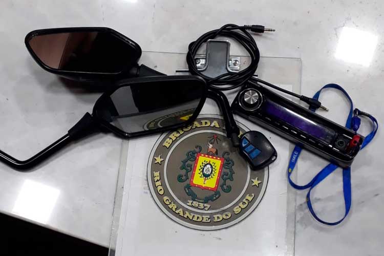Após perceber a chegada da Brigada Militar, o homem de 38 anos tentou fugir, mas foi detido pelos policiais. Com ele foram encontrados espelhos retrovisores de uma motocicleta, um cabo de áudio, um controle remoto de portão eletrônico, parte de um rádio veicular e um pendrive.