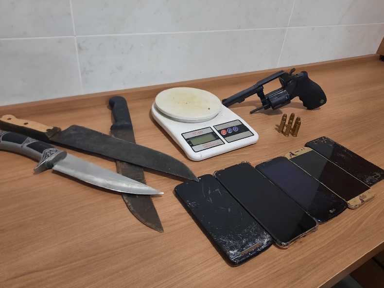 Um homem de 23 anos foi preso na Travessa Rio Pardo, no Bairro Castelo Branco. A ação aconteceu no fim da tarde desta segunda-feira, 16, por porte ilegal de arma. Ele já tinha diversas ocorrências por posse e porte de arma, além de tráfico. Os policiais encontraram um revólver calibre .38 com a numeração raspada, uma balança de precisão e três facas nas proximidades de onde o rapaz estava.