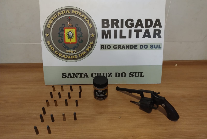 No tambor do revólver de calibre .38 havia três munições intactas e três cartuchos deflagrados. Em um pote, foram encontradas mais munições intactas e cartuchos deflagrados, estes encontrados também no pátio do imóvel. O material foi apreendido e o homem foi levado à Delegacia de Polícia de Pronto Atendimento (DPPA) para o registro dos fatos e após conduzido ao Presídio Regional de Santa Cruz do Sul.