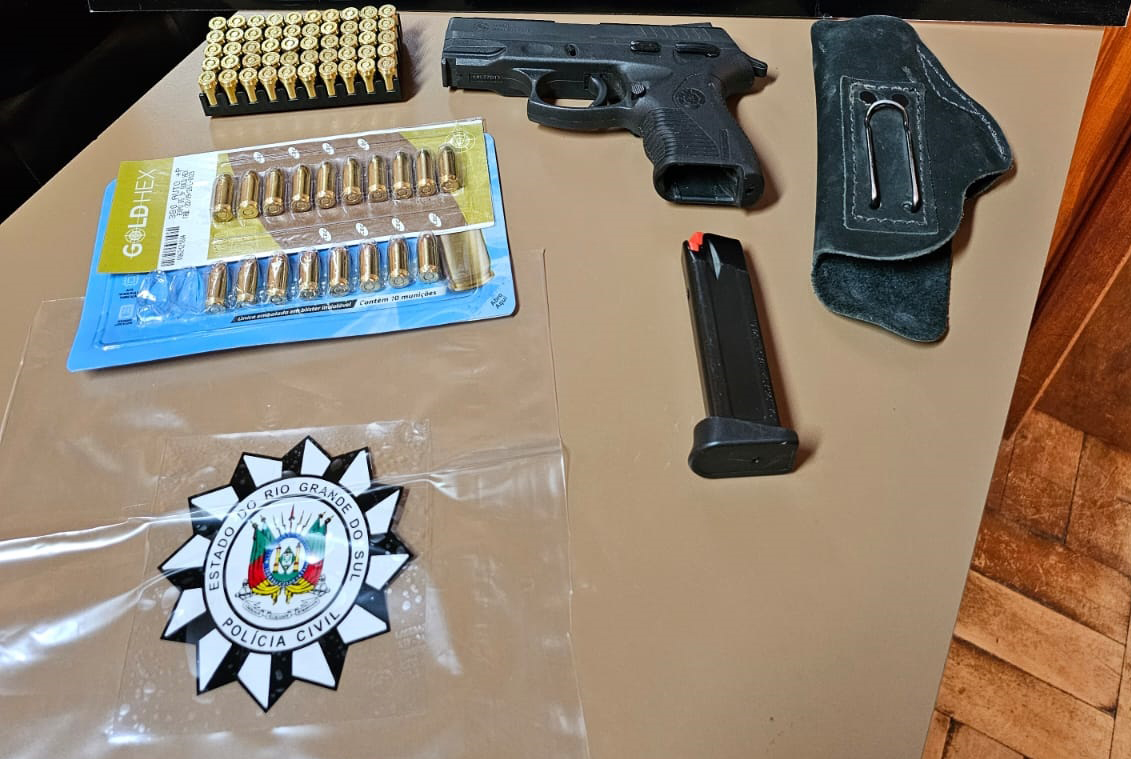 A Polícia Civil de Encruzilhada do Sul prendeu um homem de 76 anos por porte ilegal de arma e fogo e uso de selo público estadual em carro particular nesta terça-feira, 18. O cumprimento de mandado de busca ocorreu após uma investigação comandada pelo delegado Robinson Palomínio, a partir de uma denúncia.