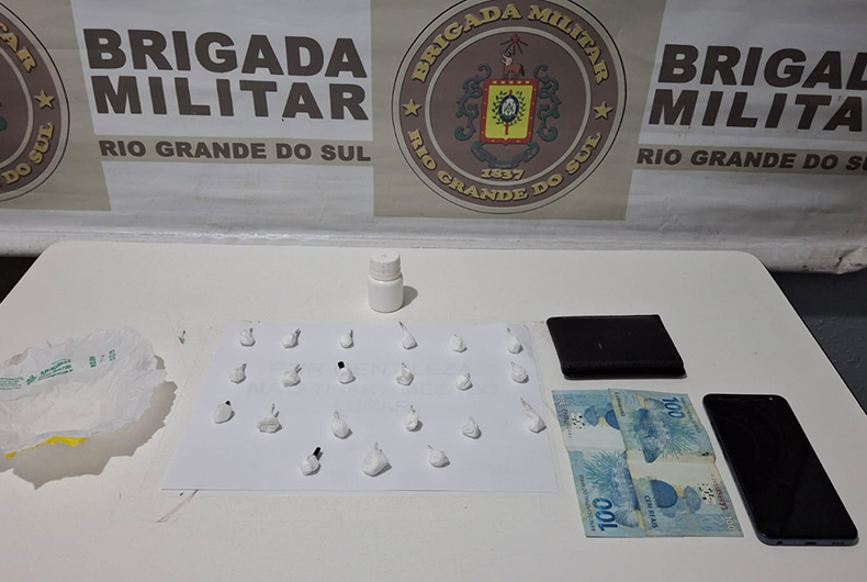 Durante patrulhamento em uma área identificada como ponto de tráfico, a equipe avistou um indivíduo conhecido dos meios policiais. Ao notar a viatura, ele se desfez de um objeto. Na abordagem, foram encontrados um smartphone, R$ 200 em dinheiro e um pote com várias porções de cocaína. O homem recebeu voz de prisão e foi encaminhado à Delegacia de Polícia Civil de Rio Pardo para registro.
