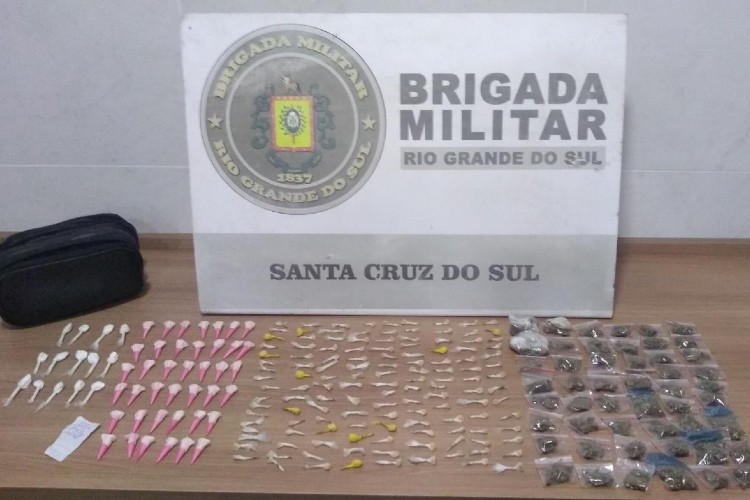 Um homem foi preso na noite dessa sexta-feira, 7, por tráfico de drogas no Bairro Pedreira, em Santa Cruz do Sul. A prisão ocorreu durante uma ação de policiamento ostensivo. O suspeito foi abordado e com ele foram encontradas quatro pedras de crack, três invólucros de maconha e dois pinos de cocaína.