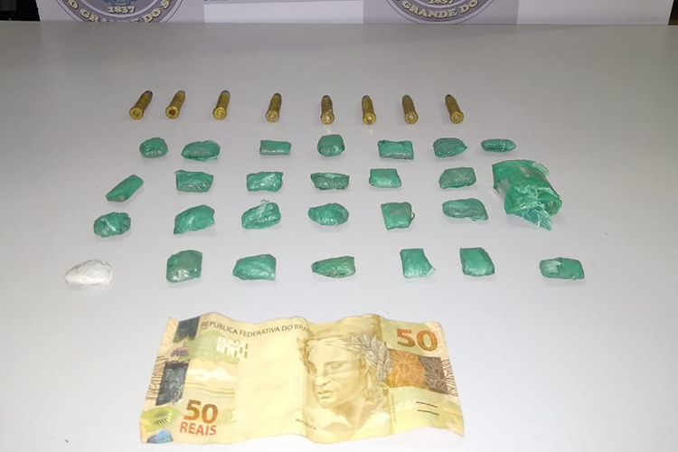 O traficante foi abordado. Os policiais o revistaram e encontraram com ele 27 porções de maconha e oito munições de revólver, calibre 38. Ainda foram apreendidos R$ 50,00. O homem foi preso em flagrante.