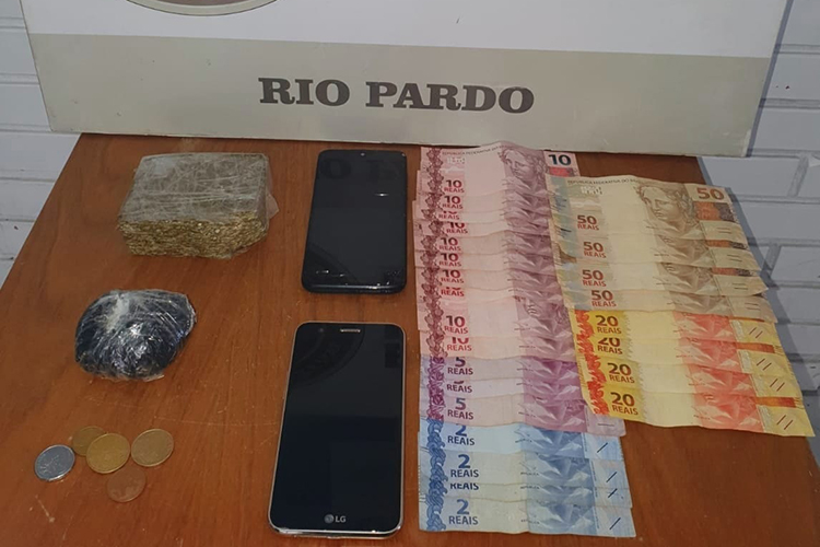 Foram apreendidos 100 gramas de cocaína, 277 gramas de maconha e R$ 404,15. O rapaz foi detido e encaminhado à Delegacia de Polícia, para registro da ocorrência por tráfico de drogas.