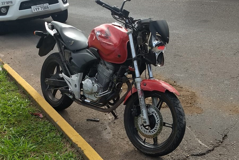 Uma colisão entre um carro e uma moto deixou um homem ferido no fim da manhã desta quinta-feira, 8, no Distrito Industrial, em Santa Cruz do Sul. O acidente aconteceu por volta das 11h30, no cruzamento da BR-471 com a Avenida Castelo Branco.