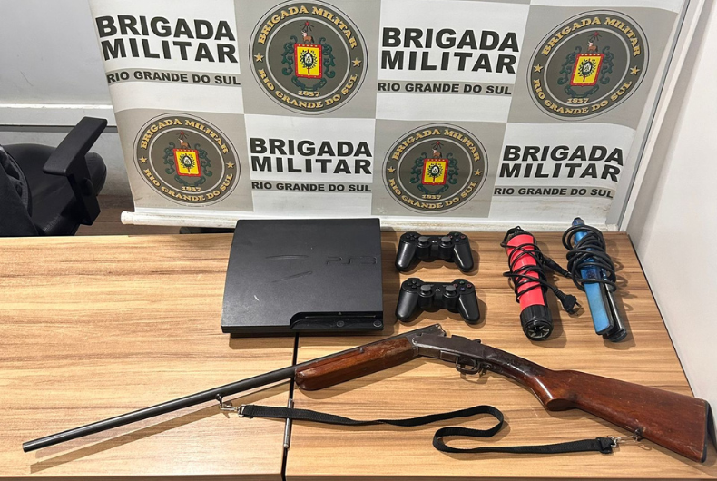 A abordagem foi realizada em seguida. Durante a busca no veículo, os policiais ainda identificaram um videogame Playstation 3 com dois controles, uma chapinha da marca Babyliss Pro e uma escova elétrica da marca Cadence. O homem não soube informar a procedência dos mesmos, sendo assim apreendidos. Em consulta no sistema, a guarnição ainda verificou que a arma jogada do carro tinha numeração e estava em situação normal, estando apenas vencida.