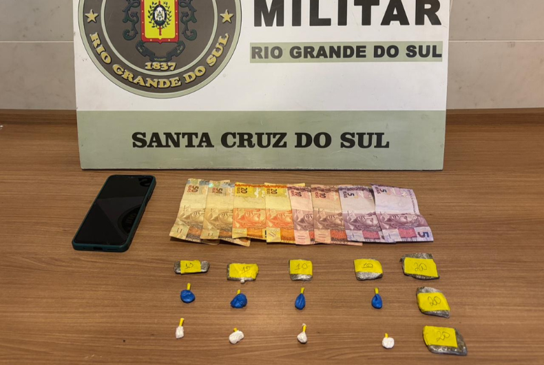 Ele foi visto buscando drogas escondidas em meio aos escombros de um terreno baldio e estava comercializando o entorpecente com usuários. Foram apreendidas sete porções de maconha, oito de cocaína, R$ 170,00 em dinheiro e um celular. O homem foi preso e encaminhado para registro na Delegacia de Polícia de Pronto Atendimento (DPPA) e posteriormente foi conduzido ao Presídio Regional de Santa Cruz do Sul.