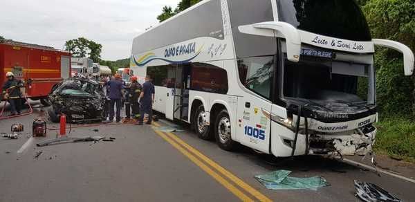 O condutor de um Honda Civic morreu nesta sexta-feira, 23, após colidir frontalmente com um ônibus da Viação Ouro e Prata, da linha Porto Alegre-Ijuí, no quilômetro 335 da BR-386, em Marques de Souza.