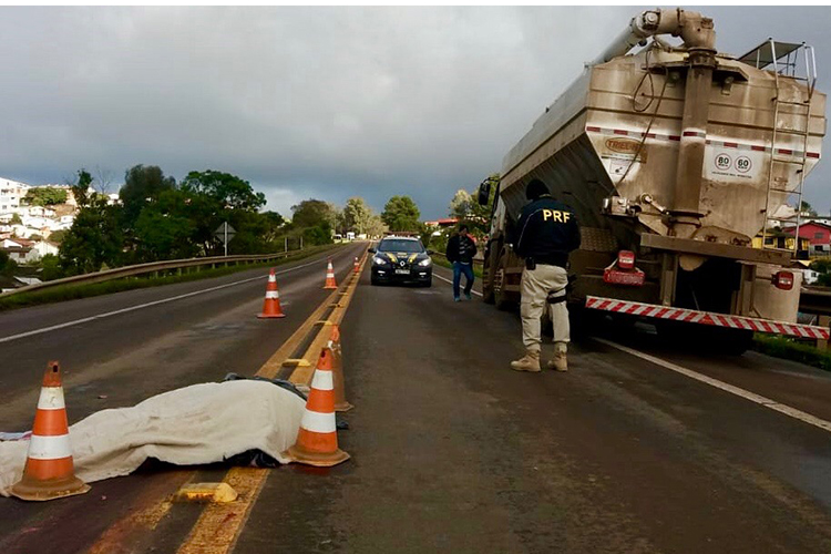 O caminhão com placas de Mariano Moro transitava no sentido Concórdia (SC) a Passo Fundo quando atingiu a vítima que, cruzava a rodovia a pé. O pedestre morreu no local. O nome do homem não foi divulgado pela PRF. O caminhoneiro não se feriu.