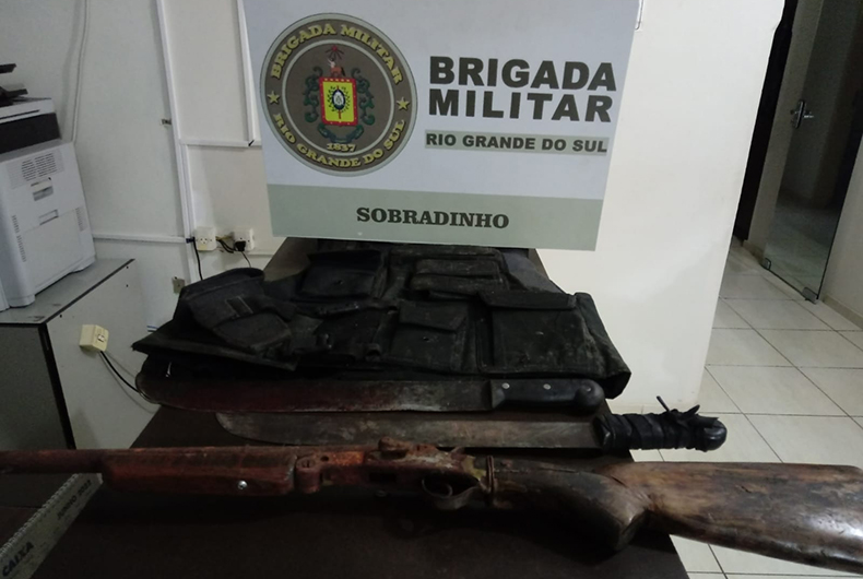 De acordo com informações da Brigada Militar, o criminoso, após uma briga, golpeou o rosto da vítima cinco vezes, com um facão. Com o homem também foram apreendidas uma espingarda calibre 20, uma capa de colete balístico de cor preta sem identificação e dois facões – um foi a arma do crime.