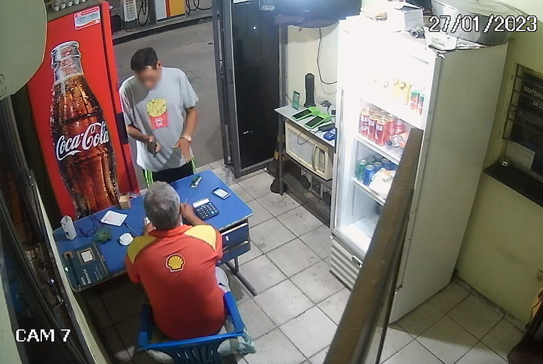 O vídeo mostra a ação completa do homem, de modo que é possível verificar que ele estava armado com um revólver. Também foi determinada a direção pela qual o suspeito fugiu do estabelecimento. Uma segunda denúncia anônima relatou que o ladrão estaria a bordo de um Gol vermelho.