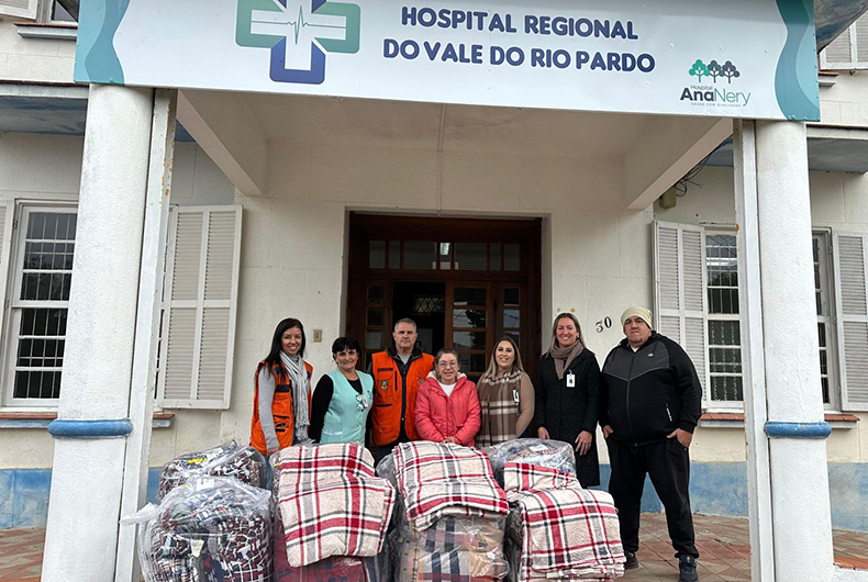 A Defesa Civil de Rio Pardo, através do seu coordenador-geral, tenente Dimas Gottardo, realizou a entrega de 240 cobertores para o Hospital Regional do Vale do Rio Pardo. A iniciativa faz parte do trabalho do órgão, que segue atuando para atender aos atingidos pelas cheias no município. O auxílio chegou a Rio Pardo em uma remessa de doações do Gabinete da Defesa Civil Regional.