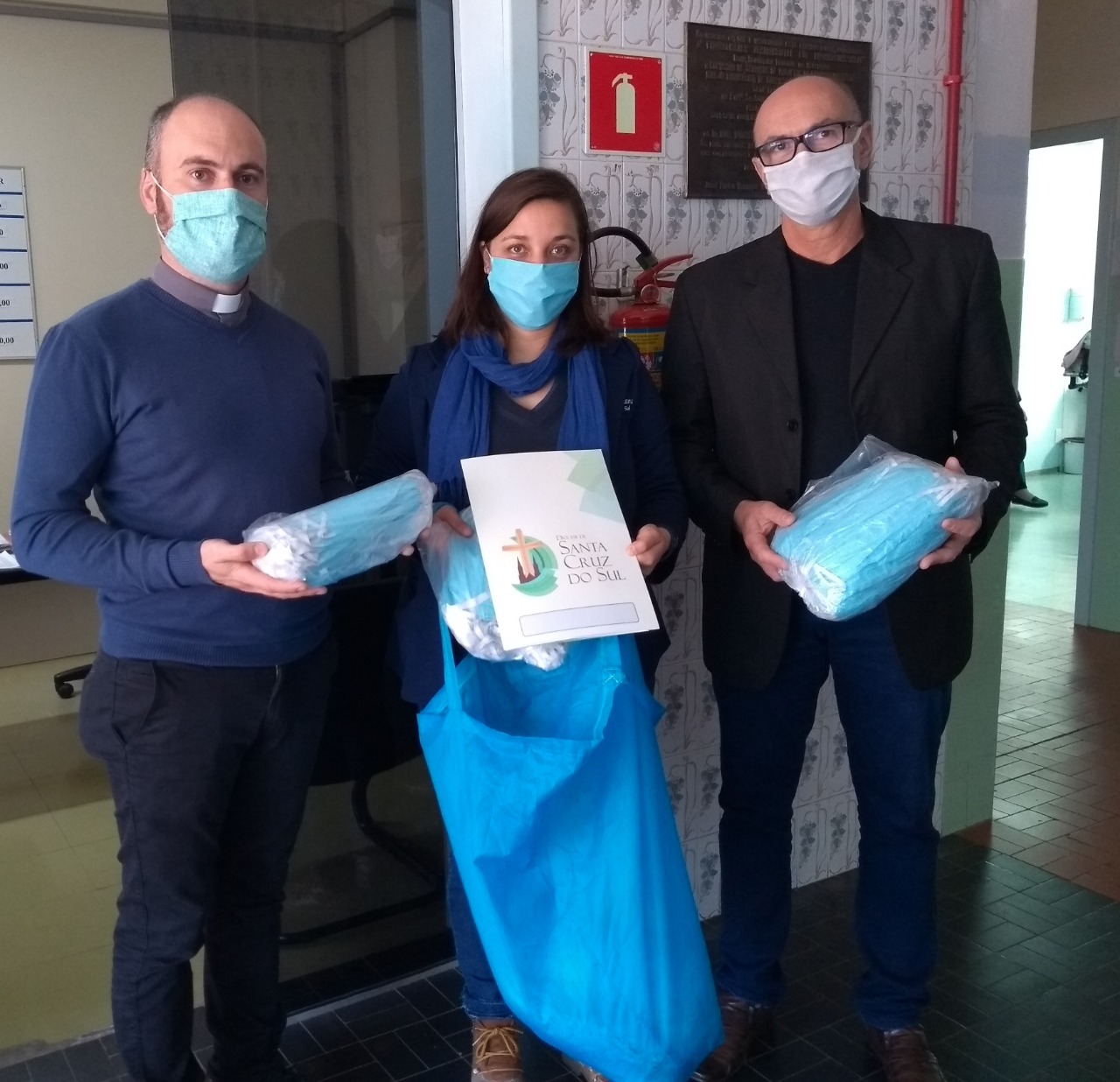 Na mobilização em apoio ao hospital, a instituição recebeu 800 máscaras descartáveis confeccionadas pelo Projeto Social Cora Coralina, do Bairro Santa Vitória, em Santa Cruz do Sul, e ligado ao Setor de Assistência Social da Mitra Diocesana. A assistente social Dianefer Berté Schwendler e o padre Rafael Henrique Toillier fizeram a entrega ao diretor administrativo do estabelecimento de saúde, Marco Aurélio Machado. O hospital ainda obteve o repasse de alimentos do Mercado Gabe, Lojas Becker e da Feira Jovem Caminhos da Agroecologia.