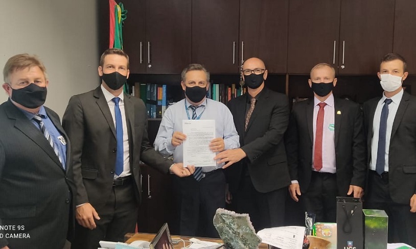 O diretor administrativo do Hospital Vale do Sol, Marco Aurelio Machado, o prefeito Maiquel Silva, o secretário municipal de Agricultura, Alessandro Kappel, e os vereadores Vanderei Martin e Astor Jaeger fizeram diversos contatos