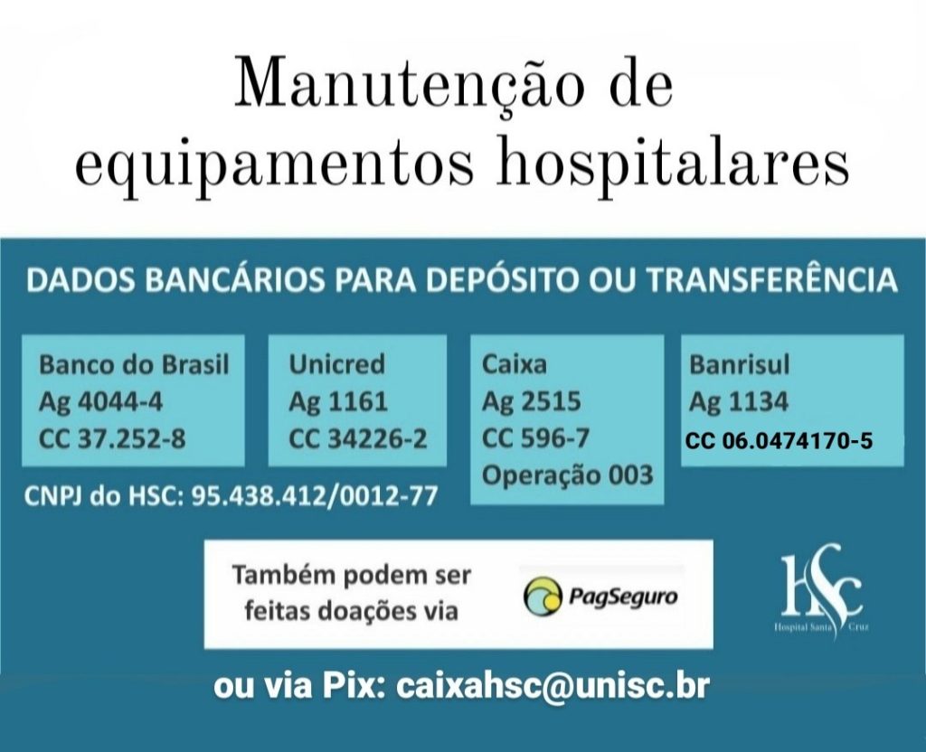 Sobre a campanha que está sendo promovida por lideranças da comunidade para a manutenção de três respiradores do Hospital Santa Cruz (HSC), a direção da casa de saúde comunica que: