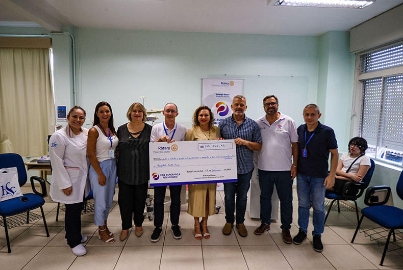 O clima era de festa no Hospital Santa Cruz (HSC) na tarde dessa quarta-feira, 7. Na data em que o Rotary Club Santa Cruz – o mais antigo do Vale do Rio Pardo – celebrou o 83º aniversário, uma comitiva formada por integrantes locais e do Distrito 4680 esteve na casa de saúde para entregar 13 equipamentos. Foram aplicados R$ 184.462,93 nos materiais, obtidos por um projeto da entidade chamado Pequenos Guerreiros. Com o recurso, foi possível adquirir três incubadoras neonatais, três bilitrons (utilizados para fototerapia), cinco umidificadores aquecidos e dois oxímetros. Destinados ao atendimento na Unidade de Tratamento Intensivo (UTI) Neonatal, começam a ser utilizados nesta quinta-feira, 8.