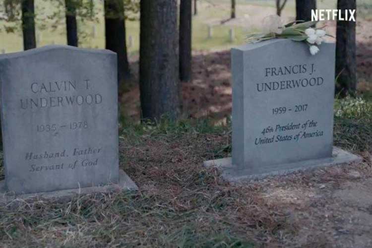 Aproveitando a liberação da nova temporada na última sexta-feira, 2, a Netflix resolveu instalar um túmulo para Frank Underwood, na vida real, para que os fãs possam se despedir do personagem quando o seriado chegar ao fim. A lápide fica em Gaffney, na Carolina do Sul, e foi vista durante os trailers da temporada mais recente, antes da mesma ir ao ar.
