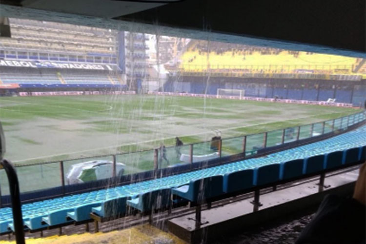 O gramado do Estádio La Bombonera ficou completamente encharcado. Foram mais de 100 milímetros de chuva, sendo que a média de novembro para a capital argentina é de 117 milímetros. Para domingo, ainda há previsão de temporais.