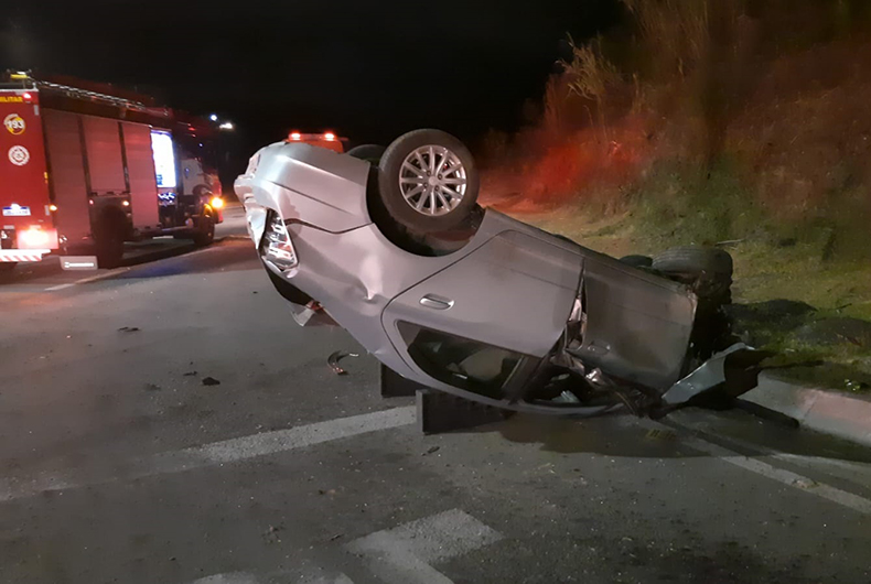 Carro capotou no entroncamento da RSC-287 com a Avenida Melvin Jones | Foto: Divulgação