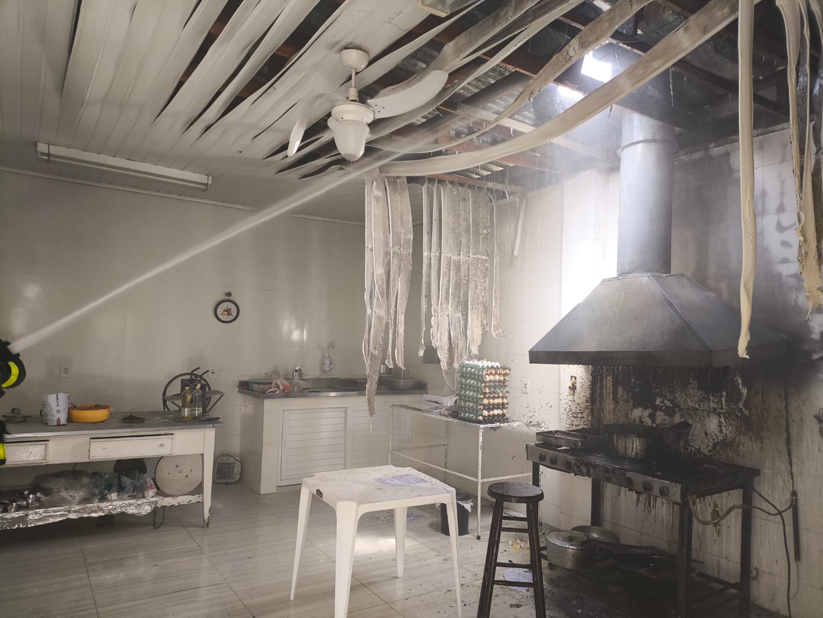 Ao chegar no local, na Rua Barão do Triunfo, Centro do município, a equipe viu que a cozinha estava em chamas. Foi então montado uma linha de mangueiras para o combate e extinção do fogo. Informações preliminares indicam que houve queima da fritadeira, onde possivelmente tenha se iniciado as chamas.