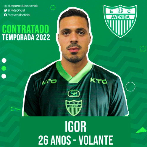 O volante Igor, de 26 anos, foi anunciado pelo Avenida. O jogador permaneceu cinco temporadas em Portugal e agora foi repassado ao CRAC, de Catalão, para a disputa do Campeonato Goiano. Ele vai defender o Avenida durante a Divisão de Acesso.