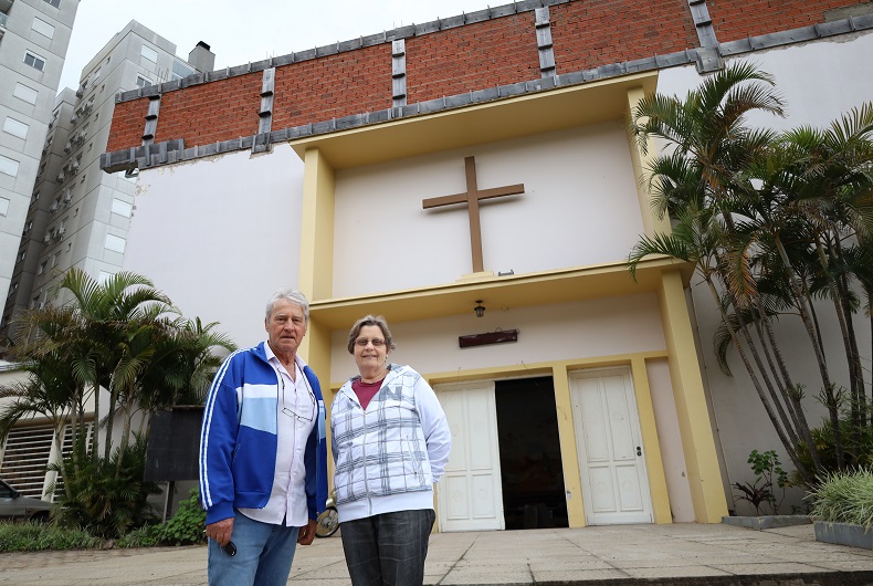 De acordo com a presidente do Conselho de Administração da Paróquia da Ressurreição, Clarissa Weigel, o início das obras em 2020 deu-se pelo telhado. “Começamos tirando o que tinha lá dentro e fazendo o teto. Ele ficou pronto, mas ainda falta o forro, que não pode ser colocado por falta de verba”, contou. A partir disso, o salão comunitário começou a ser utilizado para realizar as celebrações. “Não conseguimos juntar mais valores para continuar. São dois anos e pouco que estamos com esse projeto.”