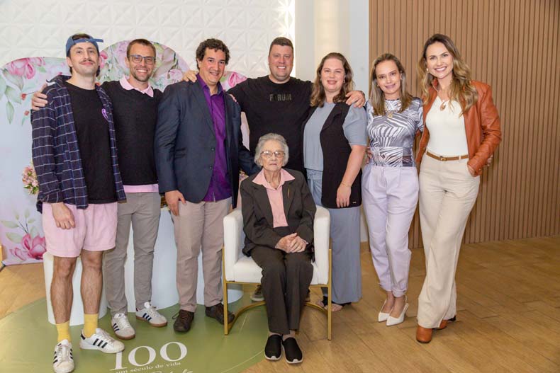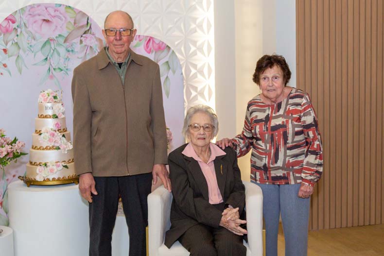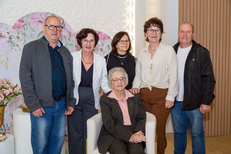 Envolvida pelo carinho e bonitas homenagens dos filhos, netos, bisnetos, demais parentes e de amigos, Edi Schulz comemorou 100 anos em almoço e café na parte da tarde no Reserva dos Pássaros. Como Astor Wartchow já comentou em sua coluna, a centenária aniversariante é leitora assídua e assinante da Gazeta do Sul há mais de 75 anos, que sempre começa o dia com a leitura do jornal.