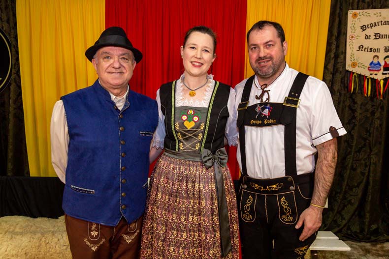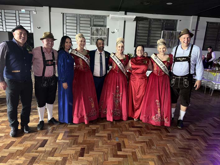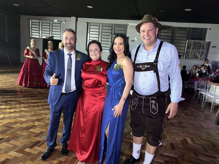 Foi muito concorrida na noite do último sábado, 27, nos salões do Avenida, as comemorações dos 20 anos da escola de língua alemã Auf gut Deustch, dos 40 anos da Oktoberfest e 147 anos de Santa Cruz do Sul. A professora e diretora da escola, Jaqueline Bender com sua equipe, organizou a bonita festa que foi prestigiada pelo prefeito Sérgio Ivan Moraes e a esposa Fátima Alves da Silva, o vice-prefeito Alex Knak, o deputado federal Marcelo Moraes, o presidente Mathias Bertram, o vice-presidente Gilberto Eidt e as soberanas da 40ª Oktoberfest, o presidente da Assemp, Leandro Vernier, secretários e vereadores do municipio, o coordenador estadual do Bicentenário da Imigração Alemã no RS, Rafael Gessinger, o coordenador da comissão do Bicenteneario da Imigração Alemã em Santa Cruz do Sul, Paulo Trinks, convidados e amigos da comunidade santa-cruzense e de visitantes da Alemanha e do Paraguai. A programação reservou apresentações artisticas, a premiação da gincana da língua alemã e o baile animado pela banda Metais em Brasa.