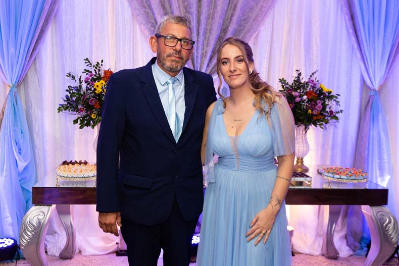 A mãe Margarete Nunes e o pai Éverton Duré, com o assessoramento de Michele Henn Waechter, receberam familiares e amigos no Salão Rosa da sede campestre do União Corinthians para comemorar com uma bela festa os 15 anos da filha Helena Duré.
