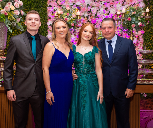 Os pais Fabiana Herberts e Elói Thesing e o mano Arthur, com assessoramento da Promopres, receberam familiares e amigos para festejar os 15 anos de Isadora Herberts Thesing nos salões da AABB Santa Cruz do Sul. A pista de dança teve a abertura com a tradicional valsa, seguida de polonaise e coreografia destacando a aniversariante.