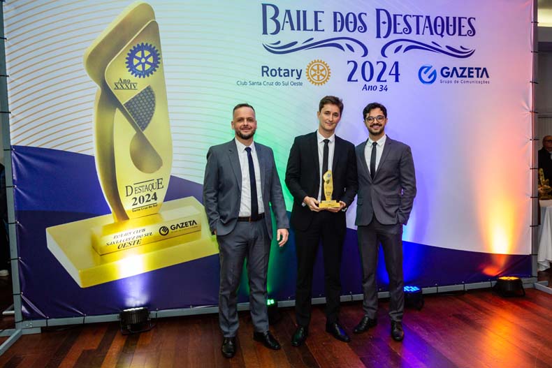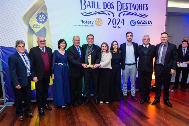 O 34º Baile dos Destaques de Santa Cruz do Sul assinado pelo Rotary Club Santa Cruz do Sul-Oeste e Gazeta Grupo de Comunicações aconteceu sábado, 7, nos salões do Tênis Clube Santa Cruz. Marco Antonio Borba falou em nome dos trinta agraciados dos mais diversos setores, que sob aplausos receberam o troféu de seus padrinhos. Todos muito festejados no decorrer do baile muito bem animado pela banda Viúva Negra.